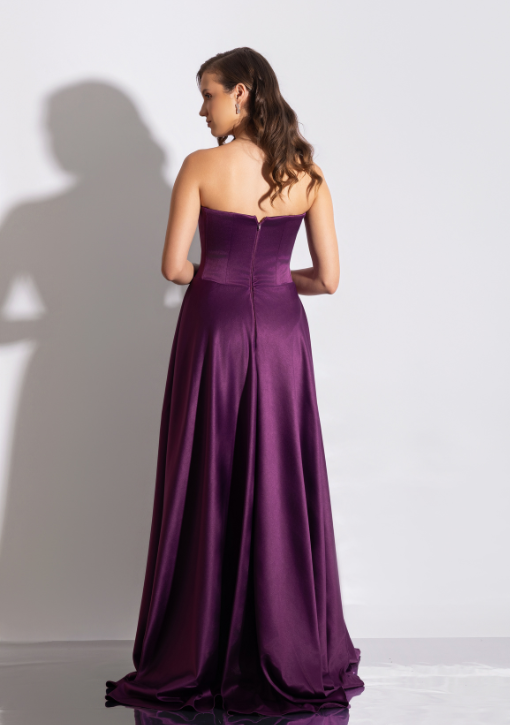 Vestido de festa longo em cetim bucol roxo com base de glitter, que traz brilho sutil e sofisticação ao visual. O modelo possui corpete estruturado que valoriza a silhueta e garante um caimento impecável. O destaque fica para o detalhe de sobre-saia, que cria volume e movimento, tornando o look marcante e elegante. Um vestido da linha Signature, ideal para formaturas e eventos especiais que pedem um visual único.